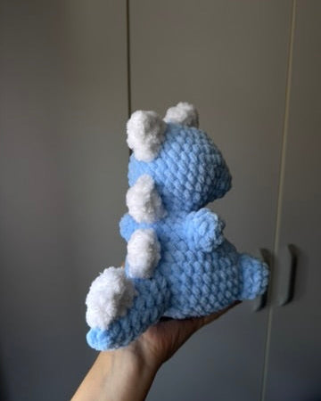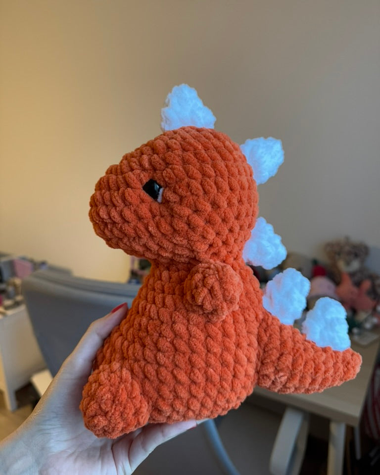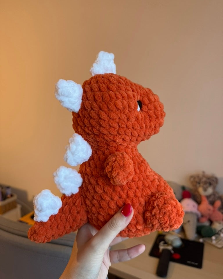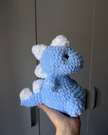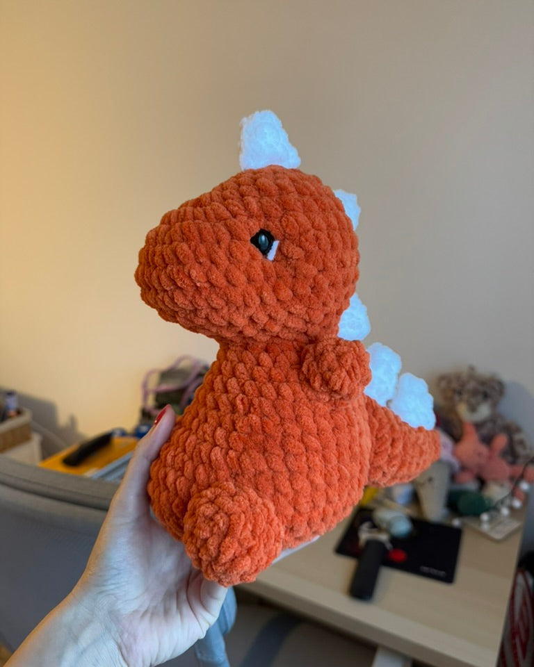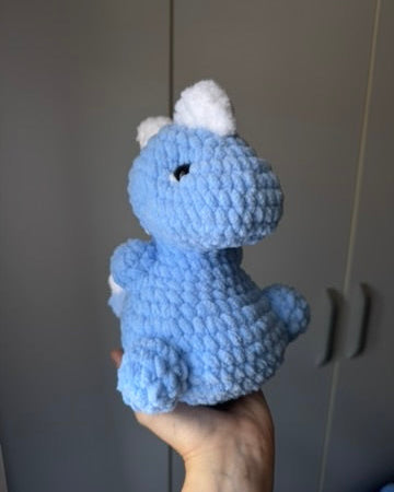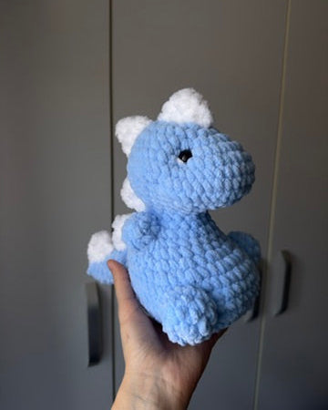 Acest dinozaur croșetat este plin de personalitate și farmec, cu spinișori simpatici pe spate și o formă "fioroasă” care îl face imposibil de ignorat. Perfect pentru cei care iubesc jucăriile handmade sau pentru a aduce un strop de culoare într-o colecție de plușuri croșetate. ✨