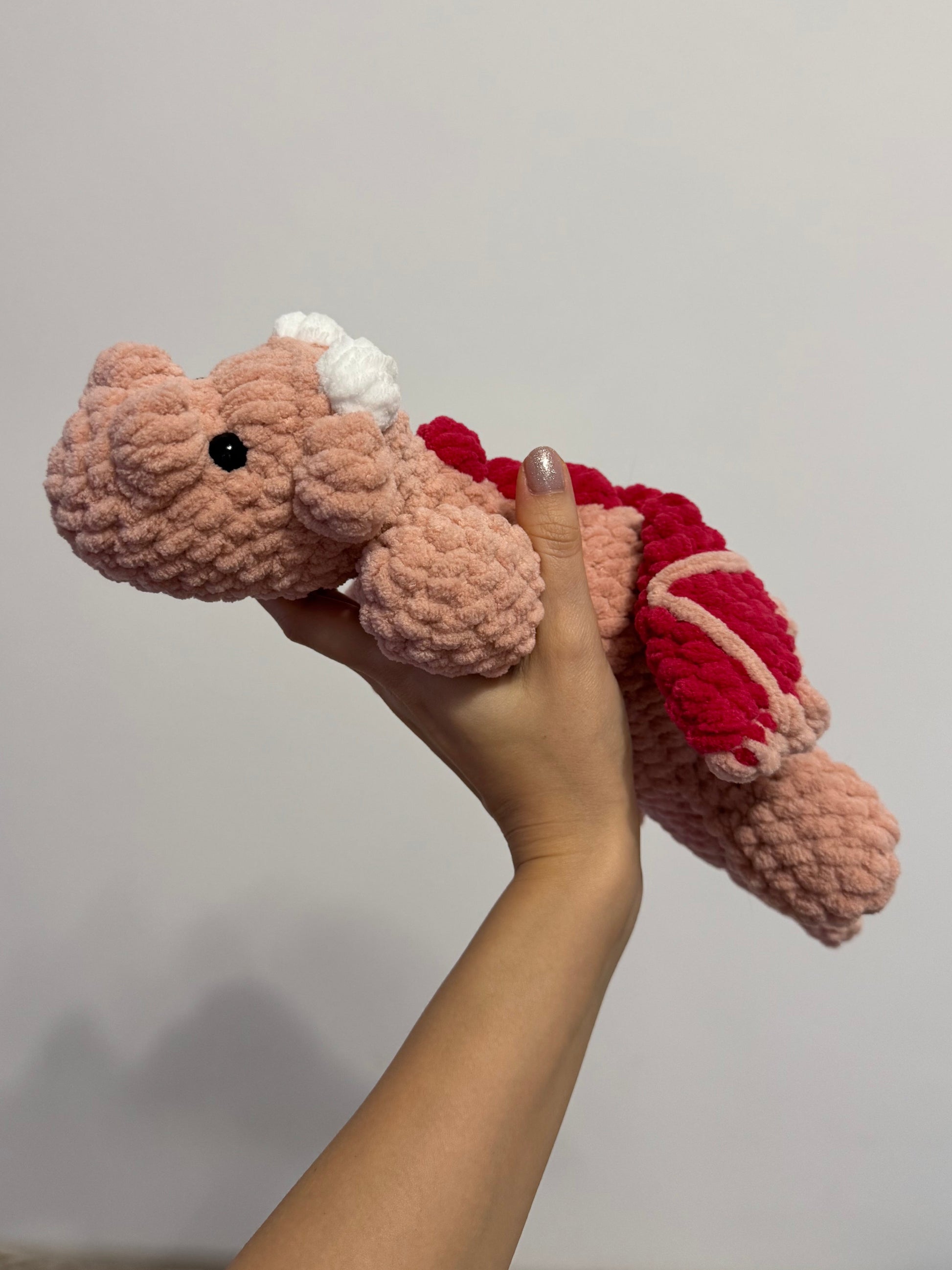 Mic, dar plin de personalitate, acest dragon croșetat este pregătit să își găsească noul aventurier alături de care să pornească în poveste. 😍