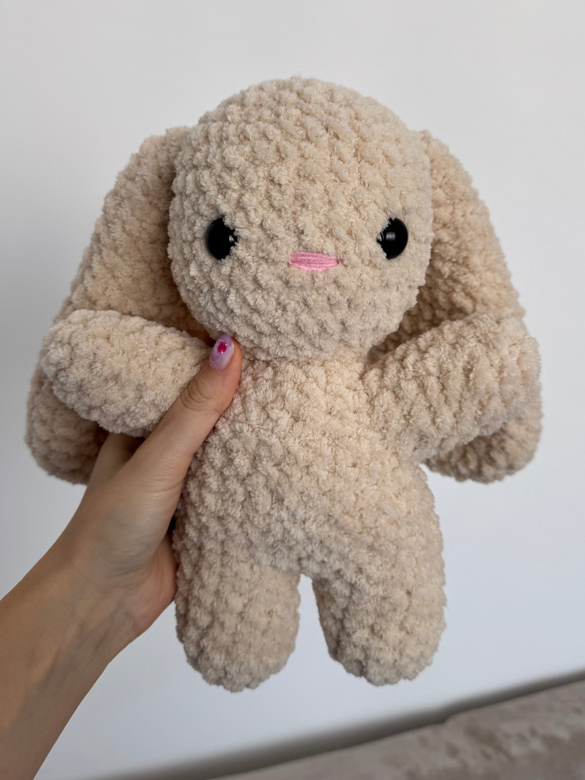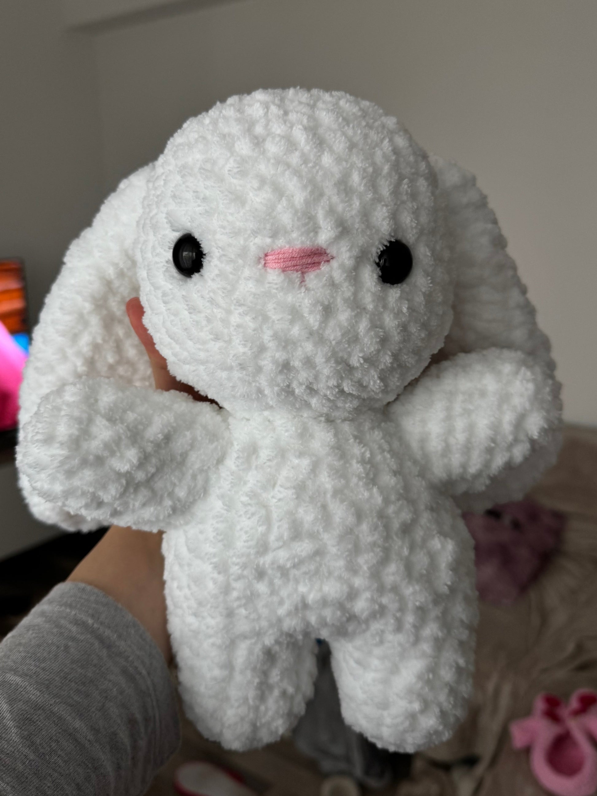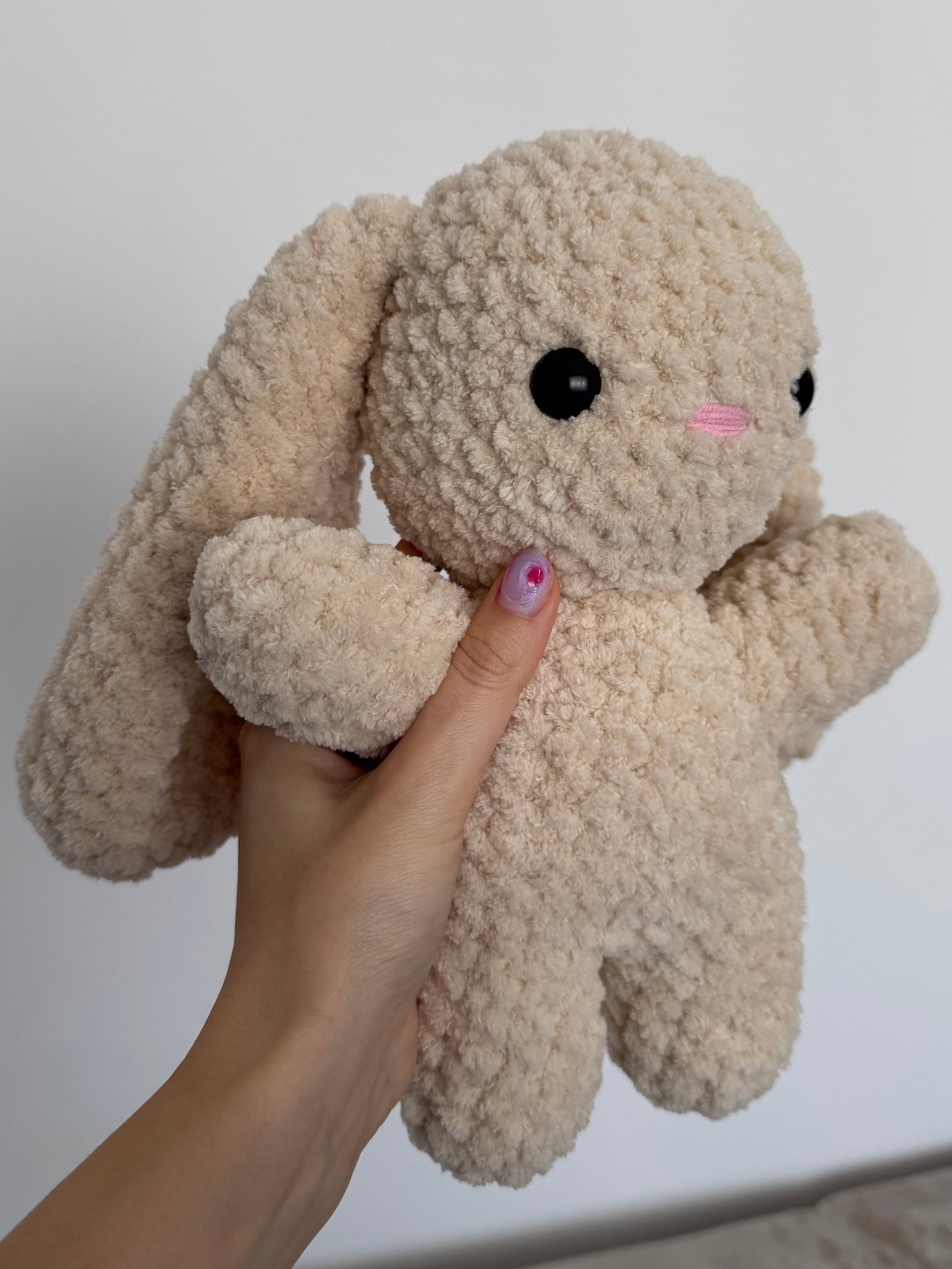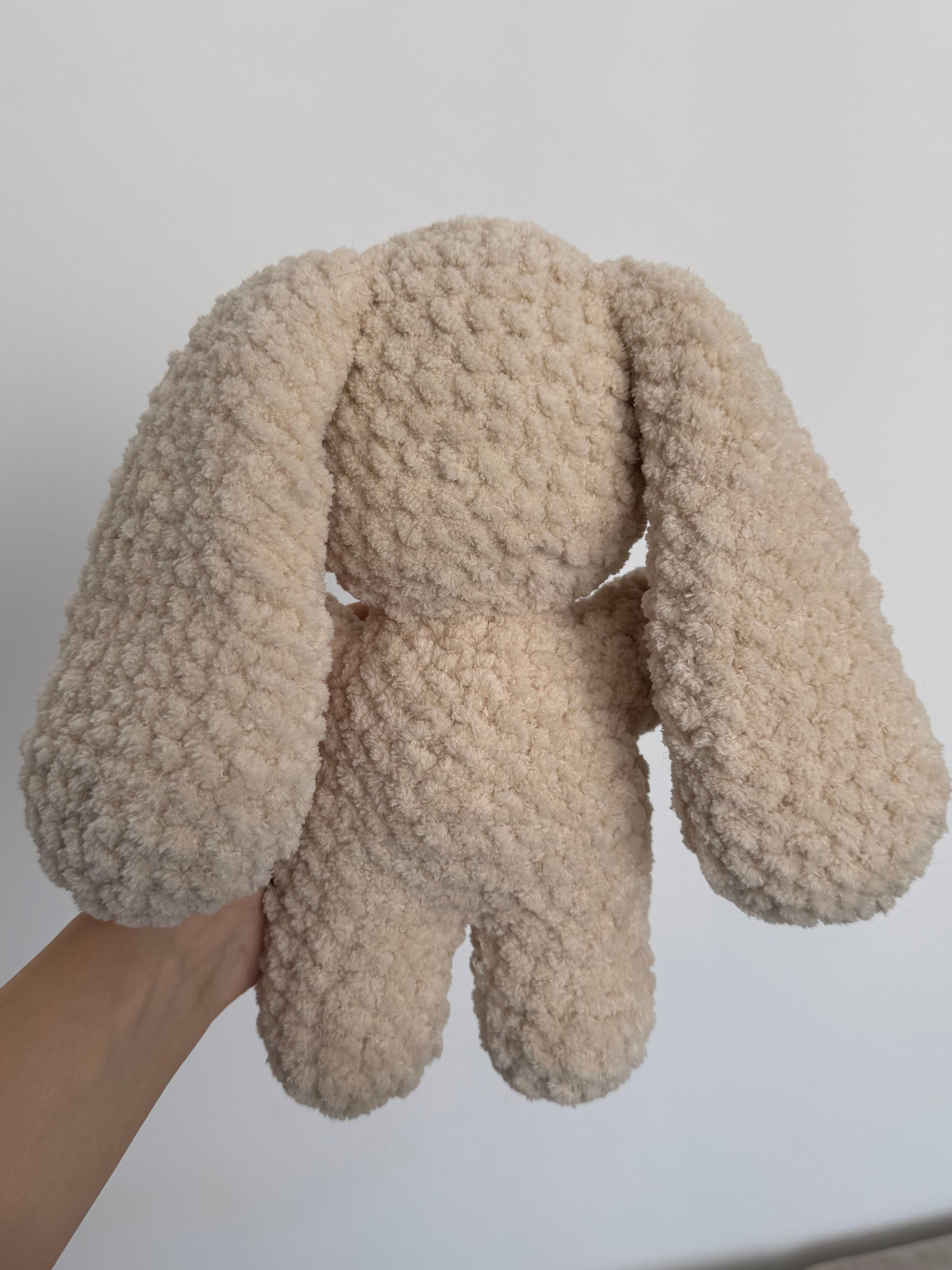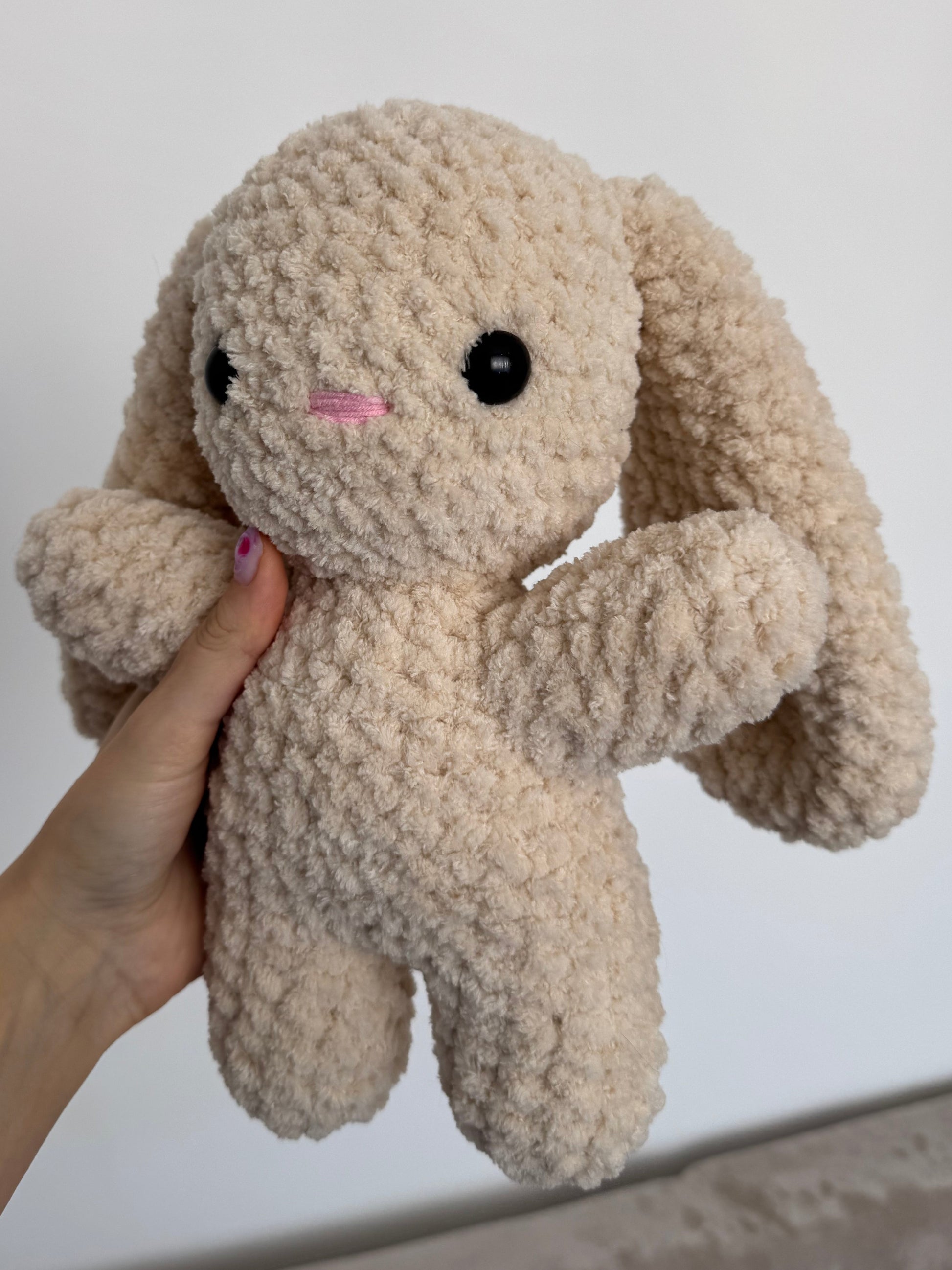 Un iepuraș croșetat cu un design minimalist și foarte simpatic. Formele simple și textura pufoasă îl fac ușor de îndrăgit și perfect pentru cei care preferă jucăriile handmade clasice. 🐰