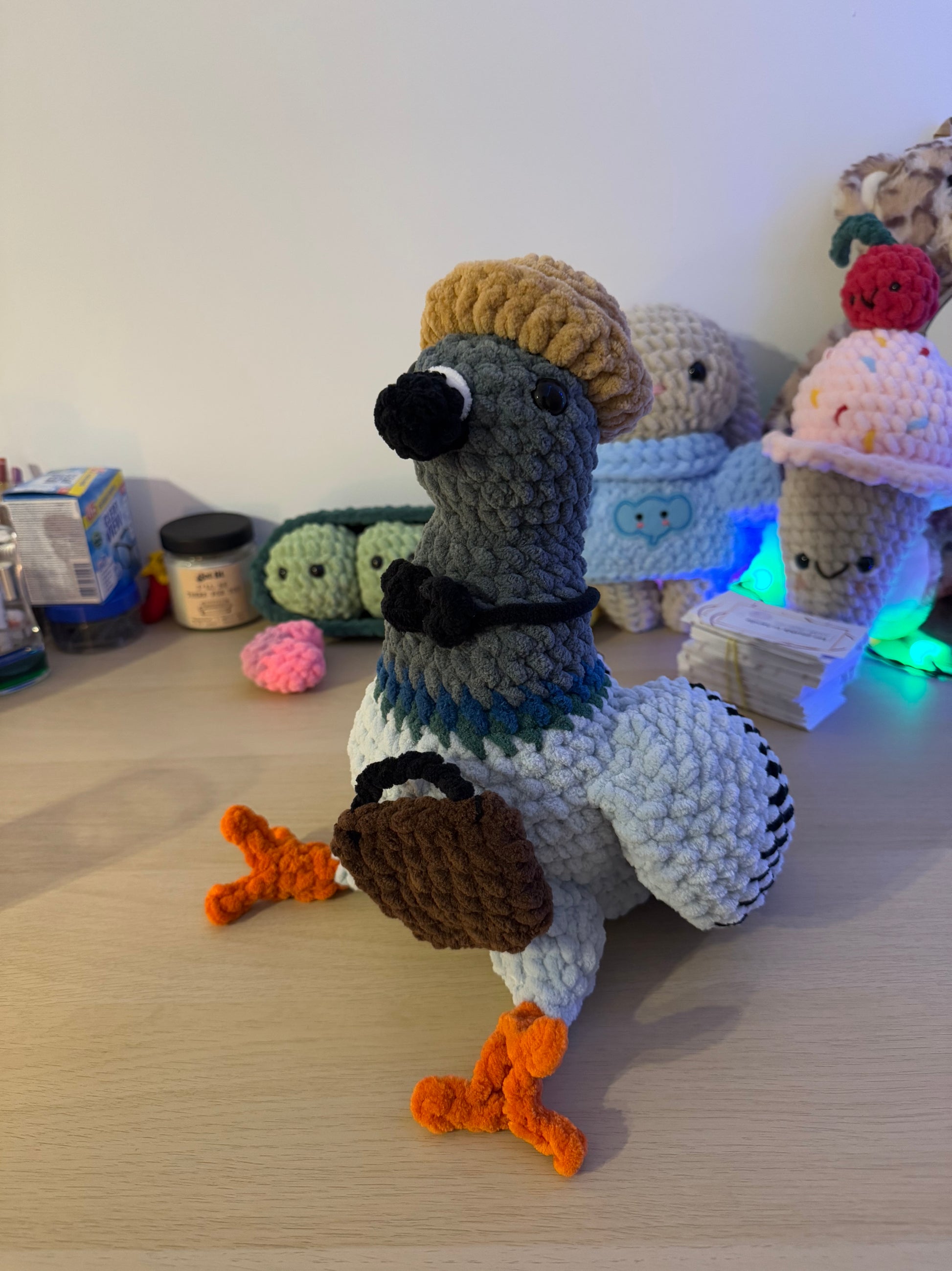 Un porumbel croșetat care pare mereu ocupat cu treburi importante. Cu pălăriuța lui simpatică și atitudinea de „om de afaceri”, acest personaj nu trece neobservat. 👀